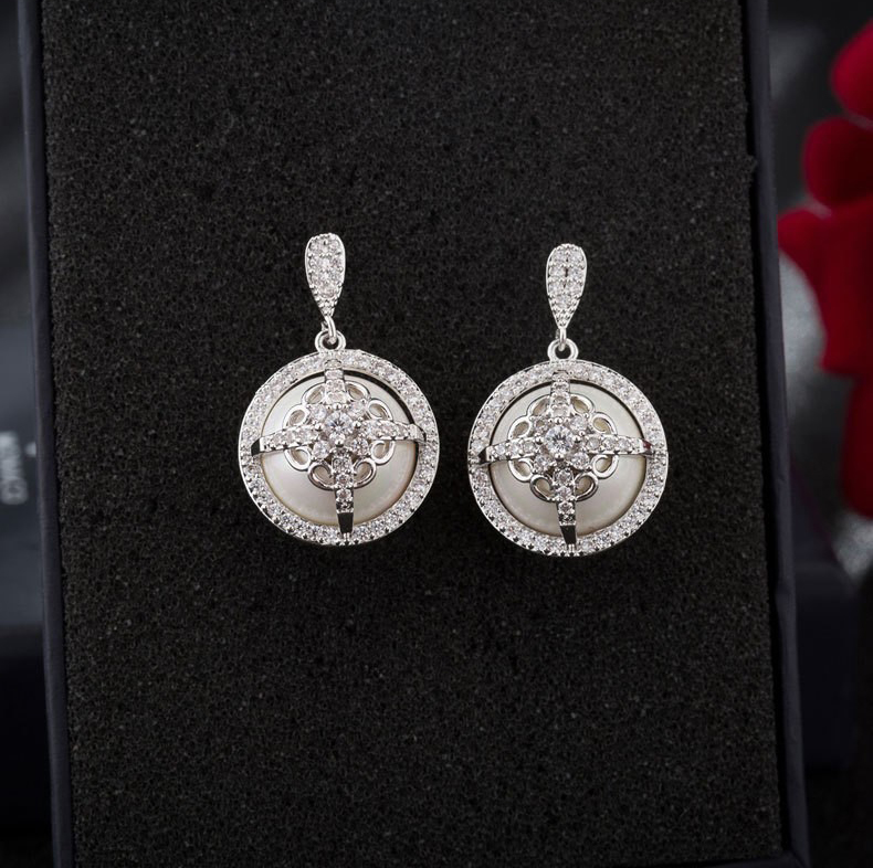 Bông tai ngọc trai họa tiết hoa đính hạt - Mẫu trang sức nữ thời trang Hàn Quốc được thiết kế với kiểu dáng độc đáo bao quanh hạt ngọc trai là những họa tiết được đính hạt lấp lánh.