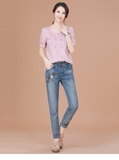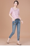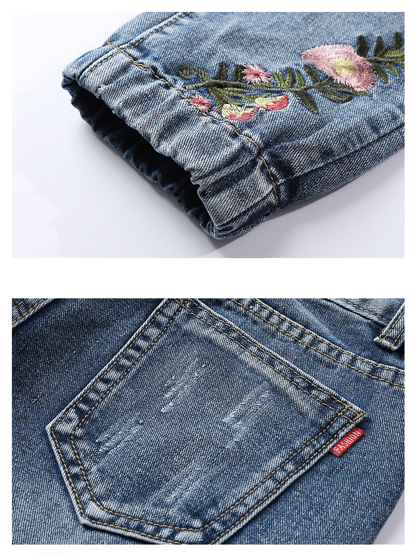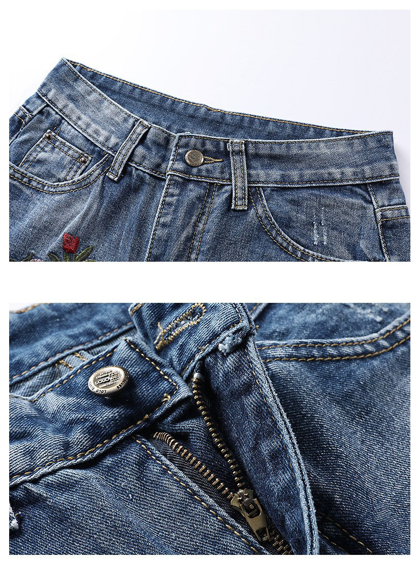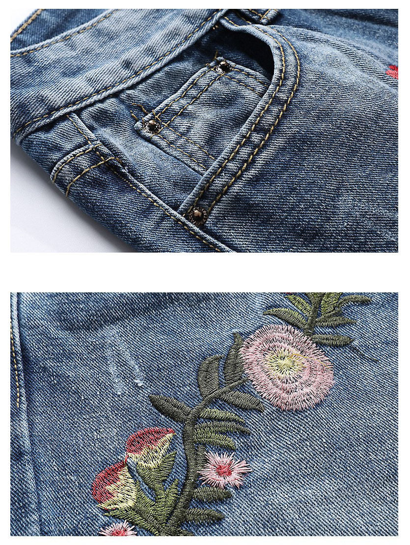 Quần jean lưng thun họa tiết hoa - Mẫu quần jean nữ được thiết kế từ chất liệu jean thun thoáng mát và thoải mái cùng họa tiết hoa tạo điểm nhấn vừa đơn giản những không kém phần trẻ trung và năng động.