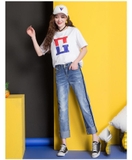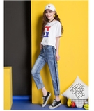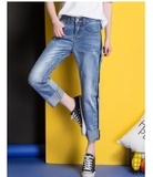 Quần jean rách bẻ lai ống suông - Mẫu quần jean nữ được thiết kế với kiểu dáng bẻ lai độc đáo tạo sự năng động và cá tính cùng với ống quần suông ôm gọn đôi chân kết hợp một vài vết rách bụi bặm.